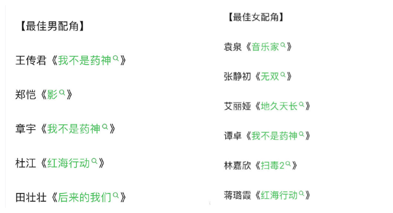 在影片方面《我不是药神》《流浪地球》《红海行动》《银河补习班》《地久天长》等叫好又叫座的影片都在评选名单之中,谁会成为最佳影片估计大家心里都没有一个准确的答案。