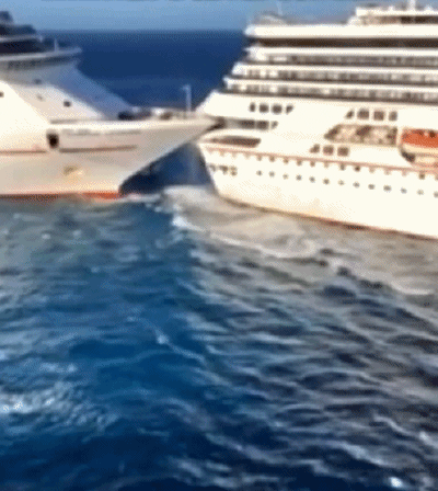 根据现场视频显示,“嘉年华荣耀号”(Carnival Glory)的船尾撞到了“嘉年华传奇号”(Carnival Legend)船首一侧,发出一阵巨大的碰撞声,船体碎片飞溅入海中。之后,“荣耀号”快速驶离“传奇号”。