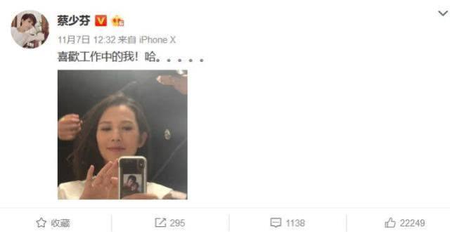 今年10月底,港媒便爆料蔡少芬已经彻底停工,在家安心养胎,不过11月7日蔡少芬又发布了一则微博称喜欢工作,让不少人大感意外,毕竟从日子来推算蔡少芬差不多就是这个月待产,而十月怀胎依然要工作,这份敬业态度令人惊喜。