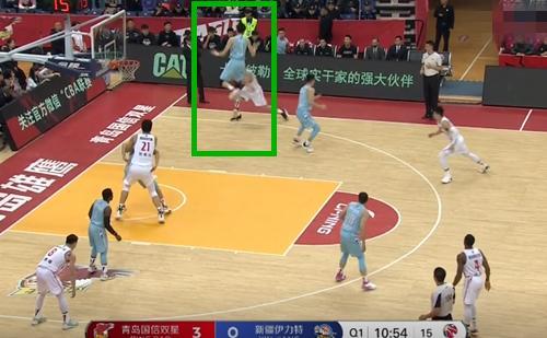 比赛行至10分54秒,新疆攻转守,亚当斯的突分找到右底角王庆明,周琦见状果断扑防,如下图,却不曾想这一扑造成噩梦一刻降临。