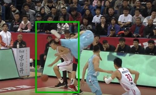 结果这一扑,周琦没有想到王庆明实际只是假投,尔后要突破,可他再想躲已来不及,王庆明也已将动作连贯,无法直接停住,画面如下: