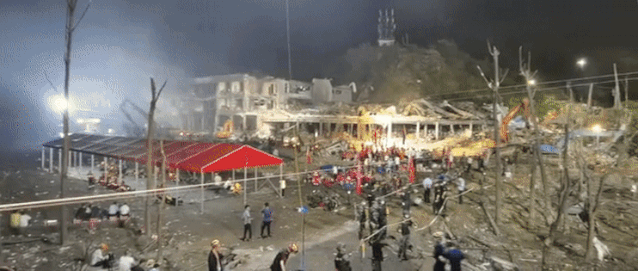 截至目前,事故已造成19人遇难,172人住院治疗,其中重伤人员24人,目前生命体征平稳。周边建筑物受到不同程度的损坏。现场处置等相关工作仍在紧张进行中,具体损失情况还在统计。