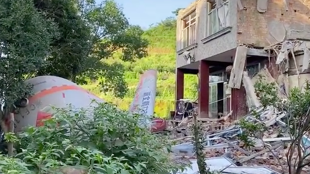 通过航拍镜头可以看到,事故现场房屋、车辆严重损毁。